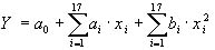 между углом Для проведения факторного анализа использовались данные пространственных характеристик осанки, биомеханических свойств мышц и амплитудно-частотных характеристик общего центра масс тела. Факторный анализ позволил выделить 7 факторов определяющих состояние осанки. Они составляли 80,57% от обшей дисперсии. Первый фактор (22,50 % от обшей дисперсии выборки) имеет высокую положительную корреляцию с показателем частоты колебаний ОЦМ в сагиттальной плоскости (r=0,828), с показателями тонуса мышц выпрямляющей позвоночник и большой ягодичной имеет отрицательную корреляцию (r= -0,614, r=-0.564 соответственно), c показателями углов наклона головы ?1 - r=0,308 и ?5- r=0,434. Этот фактор был интерпретирован нами как фактор "статических рефлексов". Второй фактор (13,04 % от обшей дисперсии выборки) имеет наибольшее факторные веса имеет по показателям упруго-вязких свойств трапециевидной мышцы, ягодичной мышцы и двуглавой мышцы бедра (соответственно r=0,786, r= 0,575, r=0,490), отмечается также значимые факторные веса по показателям угла наклона туловища r= 0,697 и амплитуды колебаний общего центра масс тела в сагиттальной плоскости r=0,663. Этот фактор можно интерпретировать как фактор "нервно-мышечной координации при выпрямлении туловища". Третий, четвертый и пятый факторы (соответственно 11,81 %, 10,71 и 9,23 % от обшей дисперсии выборки) учитывая, что эти факторы обнаруживают значительную корреляционную зависимость с показателями пространственного расположения звеньев тела человека относительно вектора гравитации (линейные от r= 0,910 до r=0.862; угловые от r=0,838 до r=0,606) в совокупности интерпретируются как фактор "геометрических показателей". Шестой фактор (7,51 % от обшей дисперсии выборки) определен как фактор "латеральной устойчивости", где отмечается высокая положительная корреляция с показателем частоты колебаний общего центра масс тела во фронтальной плоскости (r= 0,913). Седьмой фактор (5,76 % от обшей дисперсии выборки) фактор "опорных свойств нижних конечностей" где отмечается высокая отрицательная взаимосвязь с показателем тонуса икроножной мышцы (r=-0,923). Поскольку вышеприведенные анализы дают основание утверждать, что между характеристиками пространственного расположения основных биозвеньев тела человека, в положении стоя, а также биомеханическими свойствами скелетных мышц и амплитудно-частотных характеристик колебаний ОЦМ тела человека существуют значительные корреляционные взаимосвязи, мы можем найти эти зависимости между этими показателями. Представим эти зависимости в виде линейных уравнений регрессии второго порядка, имеющих следующий вид: (1), где Y - определенное биомеханическое свойство мышцы (зависимая переменная); x1, ..., x17 - независимые между собой переменные (на пример характеристики пространственного расположения тела человека в стойке), от которых зависит это биомеханическое свойство мышцы; а0, ... , а17, b1, ... , b17 - коэффициенты при переменных. Таким образом, мы получаем уравнения для моделирования биомеханических свойств мышц, участвующих в регуляции вертикальной позы тела человека по показателям характеристик пространственного расположения тела человека в стойке. МОДЕЛИ ПОКАЗАТЕЛЕЙ ТОНУСА