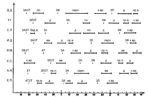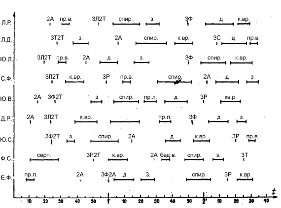 При систематизации всего разнообразия распределения элементов - в коротких программах выявлено несколько наиболее распространенных вариантов. Их придерживается наибольшее число квалифицированных спортсменов, внося индивидуально незначительные изменения. Обобщение этих вариантов, сравнение положительных и отрицательных сторон каждого из них, современные требования правил соревнований позволили разработать структуру короткой программы, отвечающую комплексу необходимых условий. Таблица 2 Последовательность элементов в коротких программах женщин