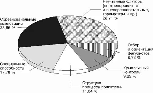 Опираясь на результаты анализа этого фактора, можно заключить, что уровень спортивного мастерства и достижения фигуристов определяются, в первую очередь, их технической подготовленностью и представленными соревновательными композициями. Во втором обобщенном факторе, составляющем 17,78 % всей выборки, выделились следующие ведущие показатели: показатели, обусловливающие мотивацию спортсменов (r = 0,866), судейство соревнований (r = 0,721), рост популярности фигурного катания на коньках (r = 0,716), хореографическую подготовленность фигуристов (r = 0,664), соревновательные композиции (r = 0,574). Данный фактор интерпретирован нами, как фактор, характеризующий специальную подготовленность фигуристов. В третьем собирательном факторе (11,84 %) с относительно высоким факторным весом выделились показатели, определяющие физическую (r = 0,853), техническую (r = 0,705) и психическую (r = 0,681) готовность фигуристов к соревнованиям, а также показатель, обуславливающий рост популярности вида спорта (r = 0,517). Этот фактор, мы идентифицируем, как фактор, характеризующий специфику процесса подготовки квалифицированных фигуристов. Четвертый обобщенный фактор, вклад которого в общую дисперсию выборки составил 9,23 % объединил показатели, обуславливающие увеличение количества престижных соревнований (r = 0,795), виды фигурного катания (r = 0,747), функциональную готовность квалифицированных фигуристов к соревнованиям (r = 0,734), технику исполнения элементов (r = 0,683). Этот фактор можно интерпретировать, как фактор, определяющий комплексный контроль в подготовке квалифицированных фигуристов. Пятый собирательный фактор (8,78 %) составили показатели, характеризующие усложнение программ (r = 0,818), совершенствование правил соревнований (r = 0,609), многообразие форм передвижения (r = 0,536), а также специальные способности фигуристов (r = 0,453). Данный фактор следует рассматривать как фактор, обусловливающий отбор и ориентацию фигуристов на его основном и заключительном этапах. Далее, нами исследования были посвящены определению основных направлений совершенствования системы подготовки квалифицированных фигуристов. В первом обобщающем факторе высокую степень связи имеют 5 параметров: соревновательные композиции, организация соревнований и условия их функционирования, необычная опора лезвия конька на лед, усложнение соревновательных композиций и соревновательные нагрузки. Выделенные показатели отражают технико-тактическое мастерство фигуриста, в силу чего данный фактор нами обозначен, как фактор технико-тактического мастерства квалифицированных фигуристов. Основным критерием оценки технико-тактического мастерства фигуристов являются его соревновательные композиции. Второй обобщенный фактор содержит четыре показателя с высокой степенью корреляционной связи: мотивация спортсменов, судейство соревнований, рост популярности фигурного катания на коньках, хореографическая подготовленность. Этот фактор можно характеризовать, как фактор, определяющий специальную подготовленность квалифицированных фигуристов и одним из основных направлений в подготовке фигуристов является совершенствование специальных способностей и специфических чувств. В третьем обобщающем факторе выделились два параметра с высокой степенью связи: физическая и техническая подготовленность и один показатель с