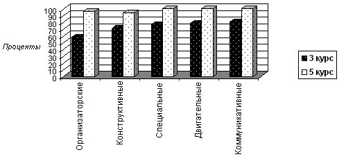 Рис. 2 Динамика формирования профессиональных способностей студентов факультета физического воспитания во время прохождения педагогической практики Выводы. Проведенные исследования по определению профессиональной подготовленности выпускников факультета физического воспитания свидетельствуют: - профессионально-значимыми способностями учителя физической культуры выпускники считают: морально-волевые, педагогическое внимание, коммуникативность, толерантность, перцептивные и двигательные качества; - развитие компонентов профессиональных способностей студентов во время педагогической практики происходит неравномерно: быстрее других формируются коммуникативный, двигательный и суггестивный; низкую динамику развития имеют конструктивные и организаторские способности; - изучение динамики формирования профессиональных способностей студентов во время прохождения педагогической практики, дает возможность выпускникам выявить уровень их проявления, с целью закрепления и дальнейшего развития позитивных качеств и корректировки негативных. Дальнейшие исследования необходимо направить на изучение динамики формирования профессиональных способностей студентов во время прохождения педагогической практики в комплексе с психологическими свойствами личности. Литература