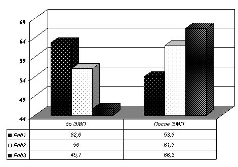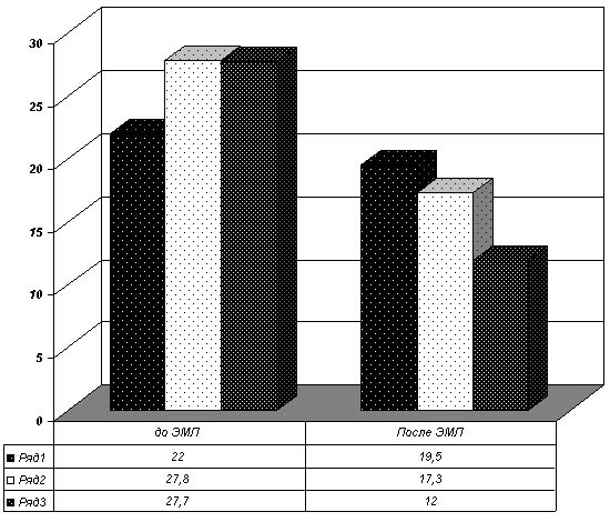 Достоверное понижение указанного показателя регуляции ритма сердца свидетельствует о значительном уменьшении влияния гуморального канала (автономного контура) регуляции на ритм сердца. При пролонгированном воздействии ЭМЛ мы наблюдали снижение ЧСС в покое 67,2± 1,2 (73,1± 2,1 контроль), мы интерпретируем это как фактор расширения адаптивных возможностях организма. Индекс напряжения (ИН) Р.М.Баевского статистически достоверен и до, и после воздействия ЭМЛ. Эти изменения свидетельствуют об уменьшении напряжения центральных регуляторных механизмов регуляции ритма сердца. Уменьшение величины ИН указывает на повышение адаптации, спортсменов к тренировочным нагрузкам (9). Из других показателей в результате анализа можно выделить тенденцию к уменьшению коэффициента вариации, степени дыхательной аритмии и асимметрии. Несмотря на их малую среднегрупповую информативность данные показатели могут быть использованы при индивидуальном анализе данных. Рис.1. Изменение показателей игровой деятельности на фоне применения ЭМЛ у гандболисток. Проведенные исследования показали, что у спортсменов экспериментальной группы на фоне пролонгированного воздействия ЭМЛ наблюдается тенденция к улучшению соревновательной деятельности по сравнению с исходными показателями результативность атак против организованной защиты. До воздействия результативность снижалась с 62,6% в играх первого тура до 45,7% в играх третьего тура, после воздействия этот показатель возрастал с 53,9% в четвертом туре до 66,3% в играх шестого тура. Показатели количества ошибочных действий имеют следующую тенденцию: увеличение с 22,0 до 27,2 количества ошибок в одну игру до воздействия ЭМЛ и уменьшение с 19,5 до 12,0 ошибочных действий после курса ЭМЛ. Рис.2. Изменение количества ошибочных действий у гандболисток после воздействия ЭМЛ. Полученные результаты позволяет констатировать достаточную степень их идентичности, что дает основание для проведения объективного эксперимента. Обсуждение. Наши исследования дают возможность предполагать, что адаптация к нагрузке ССС на фоне пролонгированного применения ЭМЛ изменяет её регуляцию по парасимпатическому типу. Как видно из результатов игровой деятельности эти изменения регуляции носят оптимизирующий характер, стабилизируют ЦНС спортсмена на более высоком уровне, сглаживанию баланса в возбуждения и торможения, наблюдается консолидации функциональных возможностей сердца. Все упомянутые факторы проявились в играх чемпионата Украины среди команд высшей лиги, где команда "Спартак-Вабанк" Киев на протяжении всех соревнований показала стабильную результативную игру. Выводы: Пролонгированное, на протяжении 15 дней, вдыхание ЭМЛ у гандболистов улучшает показатели игровой деятельности на протяжении более чем на 75 дней. Игровая деятельность характеризуется улучшением результативности и игровых действий. Изменение регуляции ССС при адаптации к нагрузкам наблюдается по парасимпатическому (более экономичному) типу. Дальнейшие исследования необходимо направить на изучение других проблем влияния пролонгированного воздействия эфирного масла лаванды на показатели игровой деятельности и адаптацию к физической нагрузке у гандболисток. Литература