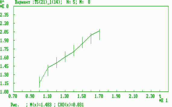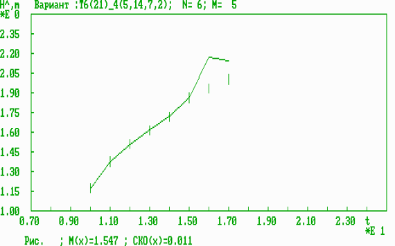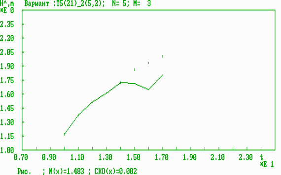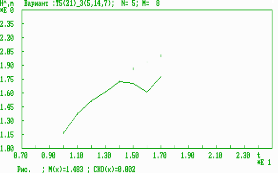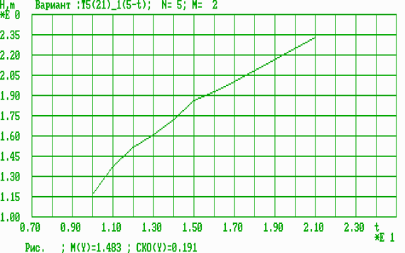 Разработана специализированная программа cor2d.com (модификация программы corrS2m.com) в среде Turbo Pascal, которая содержит следующие пункты: 1. Вызов исходных статистических данных ( файл g1_21_9.dat ). Далее приводятся только графики по пункту 11 зависимости оценки средней результативности (4) от времени t (возраста), которая называется оперативной динамической характеристикой результативности (ОДХР). Экспериментальные исследования эффективности прогноза результативности Исходные данные по 21 параметру (5-годы) для 8 возрастных групп 10-17 лет взяты из [1]: 1=> 1.17 1.38 1.52 1.62 1.72 1.87 1.94 2.01 Результаты анализа информативности полной совокупности из 15 возможных комбинаций параметров представлены в таблице 1. Таблица 1 Результаты анализа информативности спортивных параметров
