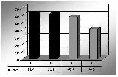 Для решения поставленных задач были использованы следующие методы исследований: анализ литературных источников; педагогические методы - анкетирование, кодовая запись игр; Результаты исследования. Результаты проведенного предварительного анкетирования гандболисток 15-18 лет показали, что 85,7% игроков испытывают чувство тревожности при выполнении бросков в падении, и 47,3% из них постоянно сосредотачивают свое внимание на удачном приземлении после выполнения действия с последующим падением. Все это они связывают с возникающим волнением и последующим состоянием напряжения при мысли о будущем падении. Нами установлено, что большую роль в предотвращении травматизма гандболисток, при выполнении бросков в падении во время игры принадлежит умению правильно выполнять группировку в момент приземления на площадку. Поведенческое проявление тревоги у игроков заключается в общей дезорганизации игровой деятельности команды во время матча или его фрагментов, что приводит к нарушению ее направленности и продуктивности, которая выражается в заброшенных мячах в ворота команды соперника. Очевидно, именно этим объясняется низкая результативность бросков в падении, которые выполняются гандболистками различного амплуа во время игры. В ходе исследования были проанализированы игры 9 команд из разных городов Украины. В общей сумме количество бросков в падении составило 150. Во время этих игр спортсменками команд, участвовавших в соревнованиях, было получено 15 травм различной тяжести. Итоги проведенного исследования представлены на рис. 2. Игроки передней линии 1. угловые игроки 2. линейные игроки Игроки задней линии Рис. 2.Результативность выполнения бросков в падении по воротам, в зависимости от игрового амплуа гандболисток (в %). Из приведенного рисунка 2 видно, что у игроков передней линии результативность бросков в падении выше, чем у игроков второй линии нападения. Это, очевидно, объясняется функциями, которые выполнят спортсменки во время игры и расположением игроков на площадке. Игроки второй линии должны атаковать преимущественно с дальних дистанций (10 - 8 метров до ворот), где возможность падения, при правильно выбранном способе броска по воротам, будет минимальна. Игрокам же первой линии (6 - 5 метров до ворот) приходится атаковать ворота соперника в непосредственной близости к защитникам, что и объясняет выбор гандболистками такого технического приема, как бросок мяча в падении. Поскольку учебно-тренировочный процесс многих команд построен именно по этому принципу, а при соревновательной деятельности игроки второй линии достаточно часто применяют способ атаки ворот в падении, то будет ясна очевидность преимущества игры в падении гандболистками передней линии. Выводы. Анализ педагогических наблюдений и результаты кодовой записи игр позволили сделать следующие выводы: