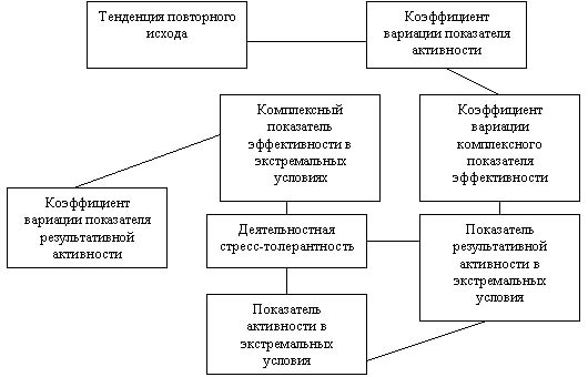 В практике гандбола Цапенко В.А. [22] к количественным и качественным показателям отдельных компонентов игры относит: ведение мяча, броски по воротам из различных позиций и положений; голевые передачи, перехваты мяча; блокирование бросков мяча в ворота; различным противодействиям игрокам команды соперников, количественные показатели "включенности" игрока в технико-тактические действия команды (или его активность), игровые приемы вратаря. Наиболее существенными особенностями, которые обуславливают эффективность и структуру технико-тактической деятельности команд высокой квалификации являются следующие. В нападении: 1. Количество бросков и их эффективность за весь чемпионат. 2. Количество бросков и их эффективность: - при индивидуальном переходе от защиты к нападению; - при коллективном переходе от защиты к нападению. 3. Количество бросков и их эффективность при позиционном нападении: - при атаках с 8-9 метров; - при атаках с 6-ти метров; - при атаках с углов. 4. Количество 7-ми метровых штрафных бросков и эффективность при их реализации. В защите: 1. Количество нарушений правил игры: - предупреждения; - удаления на 2 минуты; - удаление до конца игры; - назначения 7-ми метрового броска за грубую игру в защите. 2. Количество блокирований бросков по воротам. Выявленные особенности обуславливают эффективность и структуру технико-тактической деятельности в гандболе в нападении и защите [22]. Матыцин О.В. [19] предлагает использовать научно-технологическое обоснование методики оценки и коррекции надежности соревновательной деятельности (СД) в настольном теннисе. Для анализа эффективности СД в первую очередь целесообразно использовать количественные оценки по модельным характеристикам, наиболее значимо влияющим на ход и результаты спортивной борьбы и в наименьшей мере отражающим индивидуальные особенности игры спортсменов. На основании изучения аналитических материалов оценки соревновательной деятельности сильнейших теннисистов мира (n = 15) и ведущих российских теннисистов (n = 23) установлены следующие целевые контрольные нормативы по показателям эффективности и надежности СД: показатель активности (ПА) - 65 %; показатель результативной активности (ПРА) - 60 %; комплексный показатель эффективности (КПЭ) - 60 %; показатель реализованной инициативы (ПРИ) - 65 %; показатель эффективности приема подач (ПЭП) - 50 %; показатель результативной активности в экстремальной ситуации (ПРА) - 60 %; показатель тенденции повторного исхода (ТПИ) - 0±5; коэффициент вариации показателя результативной активности - 15 %. Немаловажной характеристикой надежности представляется вариативность показателей эффективности деятельности в течение партии и соревнования, так как отражает устойчивость и рациональную организацию структуры действий спортсмена в ответ на изменение условий спортивной борьбы, тактической направленности, стиля игры и квалификации соперников (рис. 1) [19]. Рис. 1. Блок показателей надежности соревновательной деятельности (по Матыцину О.В. [19].). С нашей точки зрения, технологию регистрации и последующей обработки результатов соревновательной деятельности можно рассматривать как определение коэффициента полезного действия (КПД) каждого игрока и команды в целом на протяжении игры и в отдельные промежутки времени. Это позволяет определять вклад каждого игр