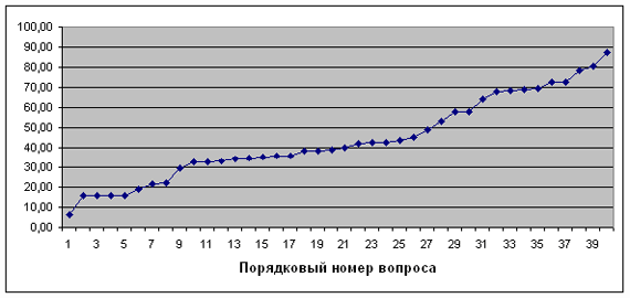 В этой группе всего один вопрос, на него ответило правильно только 6,38% тестируемых, это вопрос, касающийся термина "Физическое совершенство". Они связаны со знаниями вопросов гомеостаза и адаптации, функции почек, соединения крестцовых позвонков, суточного рациона питания (оптимальное соотношение белков, жиров и углеводов), средств закаливания и понимания терминов "фитнес", "физическое упражнение", "вид спорта". В эту группу вошло 18 вопросов, которые связаны со знанием функций дыхания (ЖЕЛ), сердечно-сосудистой системы (ЧСС), физической работоспособности, возрастного развития организма (онтогенез), а так же вопросов спортивной тренировки. К ним относятся понятия спортивной классификации, спортивной тренировки, цели спорта, физической подготовки и ее результатов. В эту группу вошло 18 вопросов, на которые студенты (от 50 до 70%) ответили правильно. Они связаны с правильным пониманием терминов "физическая реабилитация", "физическое воспитание", "физические качества", "рекреация", "двигательная активность", "школьный спорт", которые изучались ими в первом семестре в рамках дисциплины "Введение в специальность" Оставшиеся вопросы можно считать совсем легкими, поскольку на них ответило правильно свыше 70% тестируемых. Это 5 вопросов, касающихся характеристики массового спорта, профессионального спорта, физической культуры и основного средства физического воспитания. Полученные результаты позволили внести коррекцию в содержание лекционного материала по дисциплине теория и методика физического воспитания по следующим темам: "Предмет и содержание теории и методики физического воспитания", где рассматриваются основные принципы, с объяснением значения "физическое совершенство", "фитнес", "физическая подготовка", "физическая работоспособность", "средства физического воспитания", где рассматриваются естественные силы природы и гигиенические факторы. В данную тему были внесены дополнительные сведения о средствах и методах закаливания, как одно из основных факторов здорового образа жизни и способа повышения сопротивляемости организма к неблагоприятным условиям внешней среды. Особое внимание было уделено формированию знаний студентов по основным физиологическим закономерностям, которые лежат в основе занятий физическими упражнениями в системе физического воспитания различных возрастных групп населения. Для этого в программу преподавания дисциплины "теория и методика физического воспитания" была включена новая тема: "Научные основы физического воспитания". В содержание лекционного материала вошли основные теории, на которых базируется процесс физического воспитания, это гомеостаз и адаптация, возрастного развития организма человека (онтогенез), мотивации деятельности, чередование нагрузки и отдыха при занятиях физическими упражнениями, функциональные резервы организма. Внесение коррекций в рабочие программы требует обратной связи по усвоению этой информации студентами, для чего необходим периодический педагогический контроль. Учебный материал дисциплины ТМФВ сформирован в модули, что позволяет разработать поэтапный модульный контроль усвоения теоретических знаний студентов с коррекцией содержательной части каждого последующего модуля. Выводы Анализ результатов экспериментального диагностического тестирования 