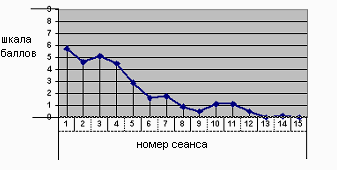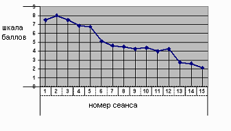 Примечание: ** - достоверность различий по сравнению с исходным значением - p<0,01; *** - p<0,001. Сравнивая степень снижения выраженности сопутствующей головной боли у пациентов обеих групп мы констатировали одинаково значимые изменения - p<0,001 (Табл.2). Однако у 5-ти больных контрольной группы все же сохранилась головная боль при физической нагрузке более 30 минут и после 8-и часового рабочего дня длительностью не более 30 минут. В экспериментальной же группе уже к 13 сеансу у всех пациентов полностью отсутствовала головная боль. Таким образом, мы можем утверждать, что реабилитационный комплекс, реализованный в экспериментальной группе, позволил получить более значимый лечебный эффект направленный на ликвидацию сопутствующей головной боли. Таблица 2. Сравнительные данные уровня головной боли до и по завершению реабилитационного цикла у пациентов контрольной и экспериментальной групп (в баллах)