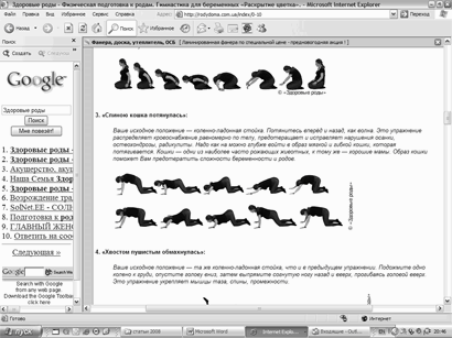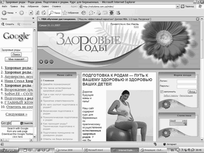 ИНФОРМАЦИОННОЕ ОБЕСПЕЧЕНИЕ КОМПЛЕКСНОЙ ПОДГОТОВКИ БЕРЕМЕННЫХ К ЕСТЕСТВЕННЫМ ЗДОРОВЫМ РОДАМ Козина Ж.Л. Харьковский национальный педагогический университет им. Г.С. Сковороды В статье дана информация относительно возможных вариантов проведения родов на Украине и за рубежом. Освещены Интернет-ресурсы, на которых представлена информация относительно подготовки к естественным родам. Представлены основные положения и результаты применения авторской методики "Раскрытие цветка" по подготовке беременных к естественным здоровым родам, которая дана на сайте "Здоровые роды". Ключевые слова: беременность, роды, здоровье, подготовка к родам, гимнастика для беременных, Интернет-ресурсы, сайт, дети, творчество, динамическая гимнастика. Анотацiя. Козiна Ж.Л. Iнформацiйне забезпечення комплексноi пiдготовки вагiтних до природних здорових пологiв. У статтi дана iнформацiя щодо можливих варiантiв проведення пологiв на Украiнi й за рубежем. Представлено Iнтернет-ресурси, на яких е iнформацiя щодо пiдготовки до природних пологiв. Наданi основнi положення й результати застосування авторськоi методики "Розкриття квiтки" по пiдготовцi вагiтних до природних здорових пологiв, що представлена на сайтi "Здоровi пологи". Ключовi слова: вагiтнiсть, пологи, здоров'я, пiдготовка до пологiв, гiмнастика для вагiтних, Iнтернет-ресурси, сайт, дiти, творчiсть, динамiчна гiмнастика. Annotation. Kozina Zh. L. The Informative providing of complex preparation of pregnant to natural healthy births. In the article information is given on the possible variants of conducting of births on Ukraine and abroad. Internetresources on which information is presented on preparation to natural births are lighted up. Substantive provisions and results of application of author method are presented "Opening of flower" on preparation of pregnant to natural healthy births, which is given on a site "Healthy births". Keywords: pregnancy, births, health, preparation to births, gymnastics for pregnant, Internetresources, site, children, creation, dynamic gymnastics. Введение. Самое прекрасное для любого живого существа на Земле - это его дитя. А рождение ребенка - это отражение творческого и созидательного начала Вселенной. Любовь и материнство уходят своими корнями в вечность, оживляя и одухотворяя мир. В этой связи идея осуществления самого прекрасного на Земле - здорового рождения здорового ребенка - всегда была и остается актуальной, является основой нашего будущего. Что же это такое, "здоровые роды"? Прежде всего - роды, происходящие естественным путем, без медикаментозного и хирургического вмешательства, при этом протекающие без осложнений [4,9,11,12]. Хозяйкой положения в этом случае является сама роженица, и роды оставляют в памяти ощущение праздника и счастья [12]. Можно ли сделать так, чтобы беременность и роды протекали хорошо, что бы это действительно было волшебным праздником и торжеством жизни, любви, счастья? Важным аспектом осуществления здоровых родов является овладение как можно большим количеством информации о физиологии родов, о процессе подготовки к родам. Положительная информации снимает страхи и открывает пути к качественной подготовке [9]. Возраст 20-30 лет - период создания семей. Он же совпадает с периодом учебы в вузах. В это время происходит активное накопление информации. В настоящее время все большую значимость приобретают интернет-технологии для сбора информации [6,7], которые осваивают наиболее активно молодые люди. Это относится и к информации относительно подготовки к родам. Исследование проведено согласно Сводному плану научно-исследовательской работы Государственно