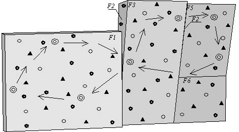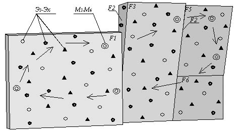 Данные представленные в таблице 1 позволили сформировать диапазон исходных нагрузок для групп спортивного совершенствования включающих спортсменов 3 и 2 разряда. На этом этапе использовалась комплексная методика тренировки, включающая как временной, так и повторно-интервальный методы. При тренировке повторно-интервальным методом, спортсмен движется по заранее построенной трассе заданной категории трудности, с определенным количеством перехватов (движений). Трудность трассы и количество движений на ней являются решающими факторами при данной методике построения тренировки. Возможная схема движения скалолаза представлена на рисунке 1. Рис. 1. Схема движения скалолаза по учебной трассе средней протяженности (F1-F6 - макрорельеф конструкции стенда; Э1-Эх - элементы микрорельефа; М1-М6 - промежуточные зоны) Во время тренировок группы спортивного совершенствования включающей спортсменов 1 разряда и КМС, использование данного метода предполагает рост количества перехватов за счет увеличения протяженности трассы. В этом случае возможен вариант движения спортсмена представленный на рисунке 2. Рис. 2. Возможная схема движения скалолаза с обязательным посещением одной из промежуточных зон Категория трудности трасс используемых в процессе тренировок, устанавливается на 1-2 категории ниже максимального значения категории трассы, которую способен пройти спортсмен. В результате анализа полученных данных, установлен режим оптимальной нагрузки при использовании повторно-интервального метода тренировки развития специальной выносливости. Таблица 2 Режим нагрузки при повторно-интервальном методе для группы спортивного совершенствования