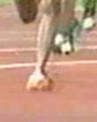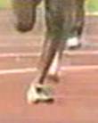 Рис. 1. Постановка стопы Мэрилин Отти (Олимпийские игры 1996 года) Постановка стопы на всю внешнюю часть у элитных спринтеров встречается редко (рис. 2). После постановки стопы на опору на внешний свод передней части во всех исследованных случаях следует опускание на всю переднюю часть стопы (Д. Бейли) и далее (у большинства спортсменов) - на всю подошвенную часть стопы (Р. Да Силва, М. Грин, Ф. Фредерикс, М. Джонсон, М. Отти (рис. 1, кадр 3)).