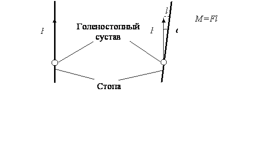 Рис. 4. Схема возникновения вращающего момента при постановке стопы под углом к направлению движения (a - угол постановки стопы на опору, F - сила давления тела спортсмена, l - плечо силы, M - вращающий момент) При этом было также установлено, что постановка стопы носком прямо вперёд должна приводить к значительному возрастанию амортизационной силы, действующей против движения. Это, очевидно, позволяет аккумулировать, а затем рекуперировать большое количество энергии (за счёт функции упругих компонентов мышечно-связочного аппарата) и может быть оправданно только при изменении направления движения, увеличении длины шага-прыжка. Обобщение результатов плоскостного видеоанализа особенностей постановки и кинематики стопы в опорный период у спринтеров, имеющих квалификацию от 1 разряда до мастера спорта (МС) позволило полностью подтвердить итоги предшествующего биомеханического моделирования. Все испытуемые (2 МС, 4 кандидата в мастера спорта (КМС) и 6 спортсменов 1 разряда) ставили стопу в беге под углом к направлению движения (табл. 1). Такой способ постановки стопы приводил к выраженному вращению стопы вокруг вертикальной оси, проходящей через её переднюю часть, и как следствие - к смещению маркера, укреплённого на бугре пяточной кости во фронтальной плоскости (табл. 1, рис. 5). Таблица 1 Кинематические характеристики движения стопы во время взаимодействия с опорой у квалифицированных спринтеров