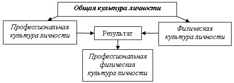 Рис. 1. Взаимосвязь культур Если общая культура личности отражает широту овладения ценностным содержанием духовной и материальной культуры, степень приобщения личности к созданию их ценностей, готовность и способность к их продуцированию, то профессиональная культура личности по существу отражает проявление общей культуры в специфических условиях профессиональной деятельности. Физическая культура выступает как составная часть общей культуры студента, как важнейшая качественная динамичная характеристика его личностного развития, как фундаментальная ценность, определяющая начало его социокультурного бытия, способ и меру реализации сущностных сил и способностей. Профессиональная физическая культура личности является результатом личностного осмысления, выработки представлений, отношений, убеждений, "программ поведения". В ней интегрируются структура самосознания, аспекты саморегуляции, самопознания, самоотношения. На этой основе формируется Я-концепция личности, обеспечивается ее устойчивое адаптивное культурной поведение исходя из особенностей профессиональной деятельности [7]. Само понятие "профессиональная физическая культура инженера", является новым и требует своего уточнения. Оно по отношению к "физической культуре личности" есть видовым, поэтому для определения его содержания уточним понятие "физическая культура личности". Современное представление о физической культуре личности учеными в области физического воспитания (М.Я. Виленский, В.А. Волков, П.И. Залетаев, В.П. Шеянов, Б.И. Загорский и др.) связывается не только с развитием двигательных качеств, здоровьем, но и культурой, широтой и глубиной знаний человека, его мотивацией и мировоззрением в сфере физкультурно-спортивной деятельности [3]. По мнению Р.С. Сафина, физическая культура личности, является органическим единством ценностных ориентаций, мотивационно-потребностной сферы, физического совершенства и практической деятельности. Более целостный подход в определении этой категории, опираясь на фундаментальные исследования личности в психологии, дает Т.В. Скобликова, физическая культура личности это целостное, многоуровневое и многокомпонентное образование, включающее в себя мотивационно-ценностный, ориентационный, операционный, энергетический, оценочный компоненты, а также мыслительной деятельности в режиме методологической рефлексии как внутренний план сознания. Принимая его за основу и учитывая профессиональные мотивы и условия деятельности инженера, профессиональную физическую культуру инженера можно определить как целостное образование, включающее систему профессиональных - мотивов, достижения совершенства и долголетия в инженерной деятельности, без снижения работоспособности и готовностью к развитию; умения культурной организации трудовой деятельности, а также ценности и культурные привычки выполнения физических упражнений направленных на компенсацию отрицательных факторов профессиональной деятельности, улучшения здоровье и трудоспособности, повышение адаптационных резервов организма инженера. Таким образом, профессиональная физическая культура многокомпонентное и многоуровневое понятие, которое можно представить в виде модели (рис. 2)
