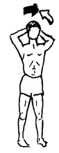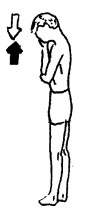 I. Наклон головы вперед (рис. 4). Голова является отягощением (вес головы составляет от 4,0 до 6,3 кг). Дыхание спокойное через нос [1]. При наклоне сделать вдох, возвращаясь в и. п., - выдох