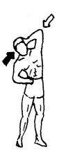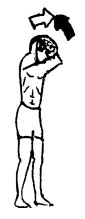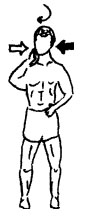 5. И.п. - стойка ноги врозь, одна рука упирается в голову, другая на поясе: наклоны головы влево-вправо, преодолевая и уступая давлению руки. Повторить в каждую стороны 6-12 раз. Дыхание равномерное, согласованное с движениями (рис. 13).