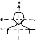 Правильное положение головы (рис. 2) определяется продольной осью головы и шеи (а), проходящей через середины линий, проведенных на уровне наружных слуховых проходов (б) и поперечной оси плечевых суставов (в). Эти две линии должны быть расположены параллельно площади опоры (полу). Вертикальная линия образует с ними угол 90° [3].