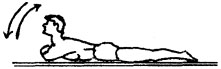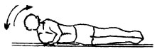 V. Повороты головы налево и направо в положении лежа на животе, руки согнуты перед грудью.