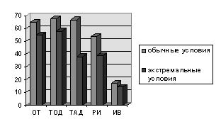 Обозначения: ОТ - общая точность, ТОД - точность оборонительных действий, ТАД - точность атакующих действий, РИ - реализация инициативы, ИВ - индивидуальный вклад Можно предположить, что команда проигрывает именно за счет снижения игровой активности и точности выполненных действий. Особые требования в экстремальных условиях предъявляются к действиям атакующей направленности. Учитывая, что в условиях напряженной соревновательной борьбы эффективность деятельности во многом зависит от личностных особенностей спортсменов, проявляющихся опосредованно через механизмы психической регуляции деятельности, необходимо отметить, что невысокая надежность соревновательной деятельности юных футболистов является следствием недостатков в технико-тактической подготовке, а также не очень высокого уровня развития их личностных качеств. Более подробный и объективный анализ тренер сможет провести после изучения особенностей личности юных футболистов с применением комплекса психодиагностических тестов. Для этого используются достаточно известные методики: подростковый вариант опросника Р. Кеттелла (1971) для выявления и качественной оценки некоторых существенных для эффективности соревновательной деятельности личностных особенностей спортсменов; методика В. Мильмана (1974) для выявления специальных свойств личности, характеризующих психическую надежность юных футболистов; опросник Я. Стреляу (1982) для изучения темперамента спортсменов; социометрия, а также мотивационно-результативные методики О.В. Дашкевича (1976). Последние позволяют проводить объективно-пси хологический анализ регуляции деятельности в условиях, моделирующих соревновательные ситуации. Резюмируя полученные ранее результаты собственных экспериментальных исследований личностных факторов эффективности соревновательной деятельности юных футболистов (14-15 лет), необходимо отметить следующее. Высокая эффективность и надежность соревновательной деятельности юных футболистов достигается за счет следующих личностных качеств: высокий уровень соревновательной мотивации, установка на точность, уверенность в успехе; комплекс волевых черт - решительность, способность к саморегуляции, волевой самоконтроль, выраженность состояния боевой готовности; в эмоциональной сфере - тревожность, эмоциональная устойчивость и помехоустойчивость; в коммуникативной сфере - высокий персональный статус в спортивно-деловой и неформальных сферах взаимоотношений; рядом свойств нервной системы - сила процессов торможения, уравновешенность нервных процессов. Характеристиками личности спортсмена, связанными преимущественно с надежностью, являются адекватная самооценка, честолюбие, целеустремленность, настойчивость, разумная осторожность, критичность в оценке, групповая зависимость, а также подвижность нервных процессов. Эти данные правомерно рассматривать в качестве модельных характеристик личности эффективного и надежного юного футболиста. Они могут служить для индивидуальной коррекции тренировочного процесса.