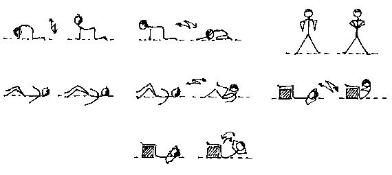 доцент Е.А. Земсков Ключевые слова: дефекты осанки, формы спины, зоны риска, специальные, общеразвивающие, корригирующие упражнения, комплекс физических упражнений, правило "перекрестной нагрузки", походка, специальные шаги. Правильная осанка характери зуется гармоничным развитием мышц туловища. Для развития мышц туловища в практике используются наклоны вперед (сгибание), назад (прогибание), в стороны, движения с поворотом (скручивание). Чаще всего сочетаются сгибания туловища с подниманием ног. Выполнение этих движений подряд воздействует только на мышцы передней поверхности туловища. Частое выполнение упражнений в этом сочетании может привести к сутулости спины. И наоборот, многократное выполнение прогибания назад, затем отведений ног назад при фиксированном положении туловища может спровоцировать уплощение позвоночника или увеличение поясничного лордоза. Сочетание однонаправленных движений не обеспечивает в полной мере гармоничного и симметричного развития мышц туловища. Для реализации задачи предлагается иной порядок выполнения традиционных упражнений, организованной по правилу "перекрестной нагрузки" на мышечные группы туловища (табл. 1). Таблица 1. Чередование упражнений по правилу “перекрестной нагрузки” на мышцы