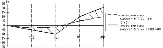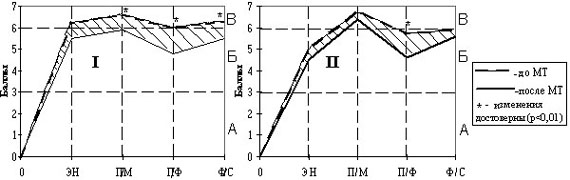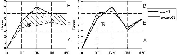 2 Рис. 6. Изменение показателей фрустрационной толерантности спортсменов под влиянием МТ в зависимости от степени посещаемости занятий:
