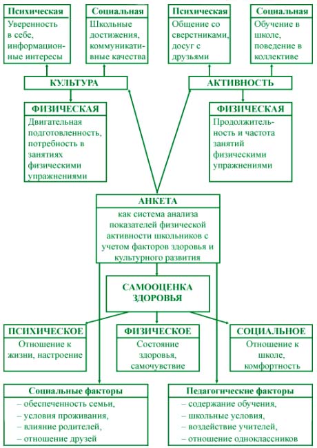 Анкета как инструмент получения социологической информации Исследования проводятся по единой программе с использованием единой методики и процедур анализа данных. Разработан стандартный инструмент проведения массовых социологических опросов детей 10-15 лет, включающий специальную анкету (см. схему), а также методику, позволяющую анализировать отношение школьников к физической культуре, исследовать социально-педагогические факторы формирования физической активности и оценки ее результативности. Первое подобное исследование с участием трех стран проводилось в 1984 году. Во втором исследовании участвовали 11, а в третьем - 17 стран. Официальным представителем России, получившим статус ассоциативного члена международной программы, является Санкт-Петербургский НИИ физической культуры. В четвертом исследовании, проводимом в 1994 году, участвовали 22 страны, в том числе впервые - Россия, представленная лишь одним регионом (Санкт-Петербург). Пятое исследование, с запланированным участием 27 стран, проводилось в 1998 году. С 1998 года в России организациями -соисполнителями международного проекта являются Уральская (Челябинск) и Кубанская (Краснодар) государственные академии физической культуры. Ниже представлены некоторые результаты исследования, полученные в ходе реализации международного научного проекта "Здоровье и поведение школьников" в Южно-Уральском регионе. Анкетный опрос проводился в декабре 1997 года на базе школ № 2, 26, 30, 31, 76, 114, 121 Челябинска с участием учащихся 6, 8 и 10-х классов (n = 1000). Результаты исследования . Физическая активность оценивалась по показателям, характеризующим физкультурно-спортивные мотивы, потребности и интересы, типы и виды физической активности, приобщенность к физкультурно -спортивной деятельности, объем физической нагрузки. Уровень приобщенности школьников к физкультурно-спортивной деятельности в целом можно оценить как недостаточный: так, например, регулярно занимаются физическими упражнения ми во внеурочное время 4-6 раз в неделю и более 39,8% респондентов, являются членами спортивных секций - 41,7%. Активно отдыхают на свежем воздухе: ежедневно - 9,9%, каждую неделю - 28,3%, реже раза в неделю - 39,6%, очень редко, практически никогда - 22,2% школьников. Выявлена тенденция к снижению уровня физической активности и интереса к урокам физической культуры у школьников с увеличением возраста. Регулярно занимаются физическими упражнениями вне школьных уроков ("так, чтобы почувствовать одышку или вспотеть") 45,5% учащихся 6-х, 38,8% - 8-х и 34,5% - 10-х классов. Отметили, что считают очень важным для себя учебным предметом физическую культуру 48,1% шестиклассников, 32,5% восьмиклассников и 28,1% десятиклассников. Уроки физической культуры в школе очень нравятся 43,3% учащихся 6-х, 21,9% - 8-х и лишь 14,4% учащихся 10-х классов. В школьном возрасте закладывается потребность заниматься спортом и физическими упражнениями в будущем. Так, например, планируют заниматься спортом и физическими упражнениями, достигнув 20-летнего возраста, 40,9% шестиклассников, 34,4% восьмиклассников и 33,1% десятиклассников. Большая часть респондентов (73,0%) считают себя достаточно осведомленными в области физической культуры, однако при этом 62,0% респондентов отметили, что мало знакомы с требованиями к двигательному режиму школьников, 58,0% - с методами самоконтроля состояния 