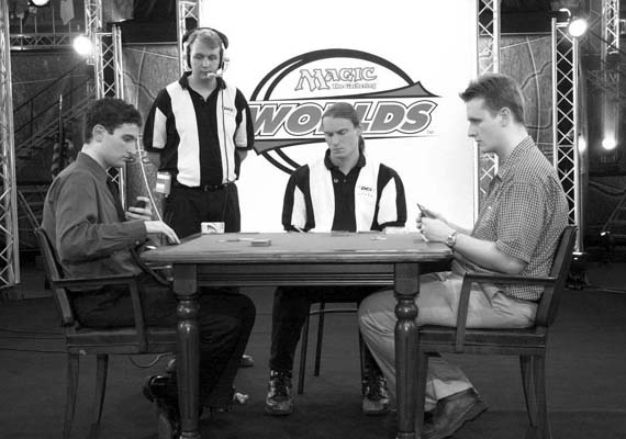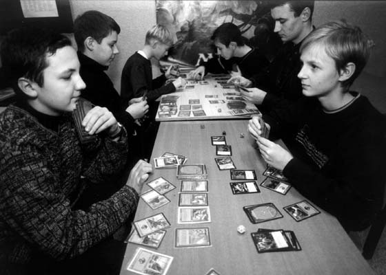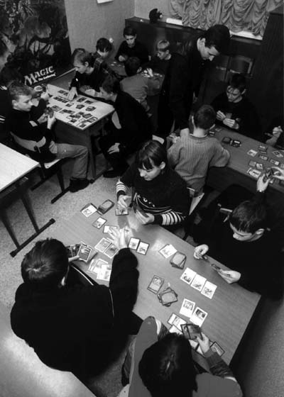 СЕРЬЕЗНАЯ ИГРА "MAGIC: THE GATHERING", ИЛИ СПОРТИВНЫЕ СОСТЯЗАНИЯ НОВОГО ПОКОЛЕНИЯ Международный судья по "Magic: the Gathering" первого уровня Д. Тагунов В 1991 году американский профессор математики Ричард Гарфилд принес в небольшую компанию "Wizards of the Coast" настольную игру, которую он разработал в качестве своего хобби. Игра понравилась и после небольших изменений, тестирования и маркетинговой оценки была принята к изданию и коммерческому распространению. Тогда еще никто не знал и не догадывался, какой силы взрыв на рынке настольных игр последует за этим. В 1993 году первые наборы карт попали в руки игроков, после чего продажи данной игры, получившей название "Magic: the Gathering" пошли настолько быстро и сама игра приобрела такую популярность, что рассчитанный на продажу в течение полугода первый тираж был распродан в течение шести недель, а "Wizards of the Coast" судорожно пыталась ускорить допечатку карт. Почему игра получила такое название? Во-первых, идея игры символизирует дуэль волшебников, сражающихся с помощью карт-заклинаний, а во-вторых, прекрасное художественное оформление карт (иллюстрация к каждой из них нарисована профессиональными художниками) делает их хорошим объектом для коллекционирования. С тех пор прошло много лет, а популярность игры продолжает расти, охватывая весь мир. Сейчас только в мировой лиге игроков в Magic зарегистрировано около 70 000, а реально людей, получающих удовольствие от этого прекрасного хобби, в десятки и сотни раз больше. Проводятся регулярные международные турниры, чемпионаты стран и мира с призовыми фондами в десятки и сотни тысяч долларов. Один из них, кстати, в апреле будет проходить в Москве. Magic? Magic! Что же это за феномен, признанный одной из лучших коммерческих идей на американском рынке хобби и развлечений? Все знакомы с обычными игральными картами, представляющими собой стандартный набор из 54 карт, для которого придуманы десятки, если не сотни различных игр. Игра Magic организована наоборот. Есть одно правило для игры и различные карты, которые могут использовать игроки. На сегодня издано уже более 6500 различных карт и продолжают создаваться новые, которые пополняют многообразие игровых возможностей. Как же происходит игра, спросите вы, представив себе игровую колоду из 6000 карт и улыбнувшись при этом? Суть игры состоит в победе над противником (обычно играют два игрока друг против друга) с помощью своей собственной колоды. По определенным правилам игрок сам составляет себе игровую колоду, подбирая в нее самые эффективные карты, отвечающие идее его колоды (каждая сильная колода обязательно базируется на придуманной игроком стратегии победы), и потом игроки встречаются лицом к лицу и сражаются на волшебной дуэли, пытаясь завоевать победу. К сожалению, объем статьи не позволяет подробно рассказать, как и по каким правилам происходит дуэль. Я лишь вкратце опишу основную структуру игры. Итак, каждый участник в начале дуэли имеет свою колоду (минимум 60 карт с некоторыми ограничениями относительно состава) и 20 условных единиц жизни. Задача каждого игрока - довести жизни противника до 0, что означает победу, хотя есть и более экзотические способы победить. Все карты условно можно разделить на два больших класса: карты, обеспечивающие ресурсы, их еще называют земли, и карты-заклинания, которые, используя ресурсы земель, создают 