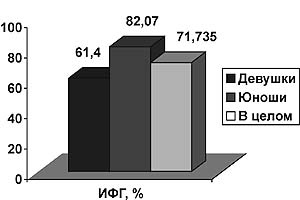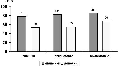 Рис. 4. Диаграмма ИФГ подрастающего поколения КБР с учетом геоморфологических условий проживания