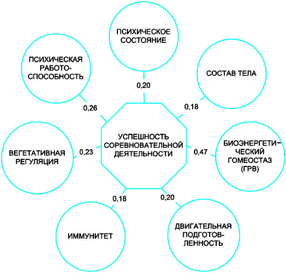 спорту и туризму, Москва Памяти Ключевые слова: психофизиологическое состояние, ГРВ биоэлектрография, биоэнергетика, многопараметрическая статистика, прогностика соревновательной успешности. Введение . Как показывает исследование соревновательной результативности спортсменов, в активных видах спорта важно оптимальное сочетание нескольких моментов [4] : - общего психологического статуса спортсмена с преобладанием черт активности и решительности, а также способности работать в команде коллективных видов спорта; - высокий тонус сердечно-сосудистой системы и уровень усвоения кислорода; - специфический для вида спорта характер мышечной структуры и активности; - высокий уровень физической подготовленности. В то же время для спорта высших достижений характерно наличие ряда факторов, отличающих занятия спортом от занятий физической культурой: - необходимость максимальной реализации в момент соревнования наработанных ранее психофизиологических ресурсов; - целенаправленное расходование ресурсов в течение года в соответствии с графиком соревнований; - эффективное использование релаксационно -восстановительных периодов в промежутках между соревнованиями для возобновления утраченных ресурсов. При этом должны учитываться необходимость сохранения здоровья спортсмена, предохранения его от перетренировок и перенапряжений, ведущих к срывам и травмам. Учет отмеченных факторов, их взаимосвязи и синергии в практической спортивной работе во многом является уделом интуиции тренера, спортивного врача и психолога. Поэтому большую актуальность приобретает выявление параметров, учитывающих психофизиологическое функциональное состояние спортсмена в целом, а также создание приборных методов, позволяющих оперативно оценивать и мониторировать состояние в процессе как тренировочной, так и соревновательной деятельности. Эти методы должны удовлетворять следующим основным требованиям: - информативности, специфической для спортивной деятельности; - объективности, независимости от оператора и условий съема данных; - простоте реализации, малому времени измерения и анализа; - возможности использования в широком диапазоне условий, вплоть до полевых, в ходе соревнований; - надежному хранению больших массивов информации; - возможности быстрого освоения непрофессиональными операторами, вплоть до самоконтроля спортсменами; - наглядному и понятному характеру предо-ставляемой информации. Очевидно, что подобным условиям могут удовлетворять только современные компьютеризированные комплексы. В Санкт-Петербургском НИИ