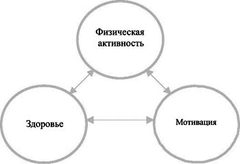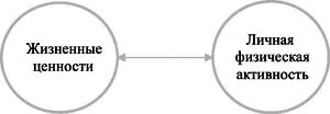 Рис. 2. Структура генерального фактора (мальчики 13 лет) В блок "Физическая активность" входят следующие переменные: физическая подготовленность (0,715); знания в области физической культуры (0,591); уровень развития силы (0,645), быстроты реакции (0,672), выносливости (0,644), гибкости (0,553), координации движений (0,624); успехи в спорте (0,702). Самооценка здоровья представлена одной переменной (0,503). "Мотивация" включает переменные, характеризующие причины занятий спортом: побеждать (0,562) и быть, как спортивная звезда (0,602). Пятый фактор можно определить как "Вредные привычки", так как он характеризует частоту употребления алкоголя до значительного опьянения 13-летними мальчиками (0,520). Учитывая, что положительное значение переменной свидетельствует о росте по шкале, можно говорить о тенденции приобщения мальчиков к более частому употреблению алкоголя до значительного опьянения. Десятый фактор, который можно назвать "Друзья", представлен одной переменной (0,574), свидетельствующей о том, что мальчики в числе близких друзей имеют только мальчиков, что характерно для этого возраста. Одиннадцатый фактор - "Физическое развитие" - дает представление о самооценке мальчиками собственного веса тела (-0,542). Причем большинство из них склонны считать свой вес недостаточным. И это соответствует действительности, так как подростковый возраст относится к периоду "вытяжения", который характеризуется интенсивным ростом тела в длину и незначительным приростом мышечной массы. В результате обработки данных анкетирования 13-летних девочек из 55 факторов выделено 6. Объяснительная "сила" генерального фактора составила 21,4%, и его можно определить как "Физическая активность". Он представлен теми же переменными (отличаются только факторные нагрузки), что и в 11-летнем возрасте: в целом физическую подготовленность (0,757); знания в области физической культуры (0,638); уровень развития силы (0,711), быстроты реакции (0,634), выносливости (0,658), гибкости (0,607), координации движений (0,676); успехи в спорте по сравнению со сверстниками (0,741). Второй фактор - "Отрицательные эмоциональные состояния" (9,6%) - включает переменные с очень высокими факторными нагрузками: тревожное состояние (0,816) и отчаяние (0,838). Третий фактор - "Мотивация" (вес 8,3%). В качестве причин занятий спортом девочки указали следующие: для будущей работы (0,824) и угодить родителям (0,872). Четвертый фактор - "Голод" (6,6%). В среднем 9,5% девочек от числа обследованных, по их мнению, иногда, часто или всегда ложатся спать голодными (нагрузка 0,617). Пятый фактор - "Школьные условия" (6,5%) составили такие переменные, как: оценка мнения классного руководителя о школьных достижениях по сравнению с одноклассниками (0,556), чувство безопасности в школе (0,738). Обе переменные имеют положительный рост по шкале и свидетельствуют не в пользу девочек. Шестой фактор - "Физическое развитие" (факторный вес 5,9%), представлен переменной, характеризующей самооценку девочками своего веса (0,833). Большинство девочек в отличие от мальчиков склонны считать свой вес, превышающим норму. В результате обработки данных анкетирования 15-летних юношей из 64 факторов выделено 5 и только в 3 из них есть переменные с нагрузкой более 0,500. Это факторы 1, 2 и 5. Первый, то есть генеральный , фактор, по своей структуре является биполярным, его объяснительная "сила" составила 24%. Вес свыше 0,500 имеют 11 переменных 