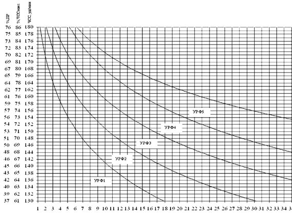 высокий; ПР - пульсовой резерв Это связано с тем, что продолжительные нагрузки аэробного характера из-за перемещения части плазмы из кровеносного русла в ткани и обильного потоотделения вызывают понижение объема крови, вследствие чего венозный возврат в правую часть сердца снижается, обусловливая уменьшение УО. Сниженный УО компенсируется увеличением ЧСС, направленным на поддержание заданной величины МОК [38]. При нагрузках в исследуемом диапазоне интенсивности средние величины "дрейфа" ЧСС за 40-45 мин работы в устойчивом состоянии составляют 8-12 уд/мин. Поэтому необходимо определять границы диапазона интенсивности работы в пределах 10 уд/мин (например, 140-150 уд/мин) и начинать занятие с нижней границы диапазона тренировочной нагрузки. Допустимую продолжительность работы целесообразно также определять для нижней границы выбранного диапазона. Это позволяет величину ЧСС, зарегистрированную в начальный период устойчивого состояния, использовать в качестве надежного критерия физиологической интенсивности нагрузки по крайней мере в диапазоне от 5 до 50 мин. Данная номограмма может быть использована при расчете ФН в любом виде циклических упражнений. Литература 1. Антони Г. Функция сердца // Физиология человека.Т.3 /Под ред. Р. Шмидта и Г. Тевса. - М.: Мир, 1986, с. 44-100. 2. Апанасенко Г.Л., Попова Л.А. Медицинская валеология. - Ростов н/Д.: Феникс, 2000. - 248 с. 3. Аронов Г.Е., Иванова Н.И. Коррекция нарушений иммунного гомеостаза с помощью дозированных физических нагрузок: Обзор литературы // Врач. дело. 1983, № 10, с. 33-38. 4. Аулик И.В. Как определить тренированность спортсмена. - М.: ФиС, 1991. - 102 с. 5. Аэробные упражнения / Виру А.А., Юримяэ Т.А., Смирнова Т.А. - М.: ФиС, 1988. 6. Бундзен П.В., Евдокимова О.М., Унесталь Л.-Э. Современные технологии укрепления психофизического состояния и психосоциального здоровья населения // Теория и практика физ. культуры. 1996, № 8, с. 57-63. 7. Ванюшин Ю.С., Ситдиков Ф.Г. Адаптация сердечной деятельности и состояния газообмена у спортсменов к физической нагрузке // Физиология человека, 1997. Т. 23, № 4, с. 69-73. 8. Васильева В.В., Степочкина Н.А. Мышечная деятельность // Физиология кровообращения: Регуляция кровообращения. - Л.: Наука, 1986, с. 335-365. 9. Голощапов Б.Р., Прокудин Б.Ф. Оптимизация нагрузок при непрерывном беге на этапе предварительной спортивной подготовки // Теория и практика физ. культуры. 1982, № 7, с. 28-29. 10. Дубровинская Н.В., Фарбер Д.А., Безруких М.М. Психофизиология развития: Психофизиологические основы детской валеологии. - М.: Владос, 2000. - 144 с. 11. Зайцева В.В., Сонькин В.Д., Бурчик М.В. и др. Оценка информативности эргометрических показателей работоспособности // Физиология человека, 1997. Т. 23. № 6, с. 58-63. 12. Иващенко Л.Я. Программирование занятий оздоровительной направленности // Теория и практика физ. культуры, 1990, № 1, с. 31-34. 13. Иващенко Л.Я., Круцевич Т.Ю. Методика физкультурно-оздоровительных занятий. - К.: УГУФВС, 1994. - 126 с. 14. Карпман В.Л., Белоцерковский З.Б., Гудков И.А. Тестирование в спортивной медицине. - М.: ФиС, 1988. - 208. 15. Карпман В.Л., Любина Б.Г. Динамика кровообращения у спортсменов. - М.: ФиС, 1982. - 132 с. 16. Корниенко И.А., Сонькин В.Д. "Биологическая надежность", онтогенез и возрастная динамика мышечной работоспособности // Физиология человека, 1999. Т. 25, № 1, с. 98-108. 17. Корниенко И.А., Тамбовцева Р.В., Панасюк Т.В. и др. Индивидуальные особенности соматотипа и энергетика скелет