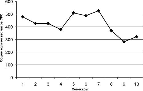 Рис. 1. Распределение общего количества часов самостоятельной работы студентов (CРC) за период их подготовки в вузе