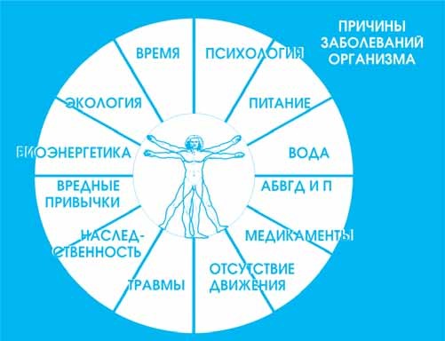 Основные причины заболеваний организма человека ( АБВГД и П - агрессия бактерий, вирусов, грибков и других паразитов по О.А. Бутаковой) Как отмечает В.К. Бальсевич [2], отсутствие серьезной государственной поддержки внедрения инновационных технологий повышения качества жизнедеятельности народонаселения России, обеспечивающих активизацию процессов освоения здоровьеформирующих ценностей физической и спортивной культуры в массовой общеобразовательной школе, становится все более актуальной проблемой. Нами разработаны основные концептуальные положения здоровьеформирующих технологий: 1. Выделенные общепедагогические и специфические принципы физического воспитания, составляющие сущность формирования культуры здоровья школьников 6-17 лет. 2. Разработанный аксиологический подход к воспитанию ценностного отношения школьников разного возраста к ФК, здоровью и ЗОЖ базируется на основе разных типов внутренней картины здоровья. Для нормальной адаптации и сохранения здоровья современного человека важны все факторы, определяющие личность, а не только природно-климатические и средовые условия его обитания. В этом случае основная задача педагогической деятельности - создание условий, в которых человек формирует себя целиком, именно в этом смысле здоровье истинно, вечно, совершенно, самоочевидно, достоверно. В результате здоровьеформирующая деятельность становится, по существу, социокультурной деятельностью, связанной с процессом становления и развития индивидуального бытия человека в его взаимодействии с социокультурным символом здоровья. Здравоохранительная деятельность приобретает статус необходимой для человека всегда, начиная с момента его рождения, и не только в виде лечебно-профилактических мероприятий. Именно такой подход позволяет охватывать всех учащихся независимо от исходного отношения к здоровью, к ФК, но требует детальной методической проработки ключевых тем соответственно возрасту и типам сформированности внутренней картины здоровья. 3. Адаптированная модель формирования внутренней картины здоровья школьников не только может стать основанием для построения современных образовательных систем, но и позволит им быть здоровьеформирующими, а не здоровьесберегающими (точнее поддерживающими соматическое здоровье и мало влияющими на характер развития здоровья как целостного явления). Изучение проблемы отношения человека к своему здоровью показывает, что обязательным фактором является формирование внутренней картины здоровья (ВКЗ) - особого отношения к здоровью, выражающегося в сознании его ценностей, и активно-позиционного стремления к его совершенствованию. В нашем представлении ВКЗ - это самосознание и самопознание человеком себя в условиях здоровья. Это базовое как в валеологии, так и в психологии здоровья понятие имеет большое значение для формирования "Я-концепции" в процессе физического воспитания. ВКЗ есть определенное психофизическое пространство, где человек способен оценить свои биологические, социально-психологические и духовные возможности. В формировании ВКЗ особую роль играют не только эмоциональные компоненты, но и интеллектуальные, и волевые. На основе опыта окружающих (бытового представления), информации, почерпнутой из литературных источников, чаще медицинских (научно