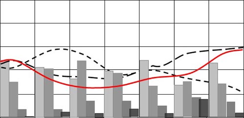 В исследованиях приняли участие 20 юных велосипедисток в возрасте 12-13 лет. Для определения функционального состояния использовались измерения ЧСС, АД, МПК, PWC Тренировочный процесс в экспериментальной группе предусматривал построение средних циклов с учетом становления овариально-менструального цикла, в контрольной группе тренировки осуществлялись по общепринятой в велоспорте методике. Результаты исследования. Структура подготовительного периода включала пять мезоциклов: втягивающий, базовый, восстановительно-поддерживающий, базовый, восстановительно-поддерживающий, в процессе каждого из них определялось воздействие тренировочных нагрузок на различные функции и системы юного организма (рис.1.).