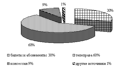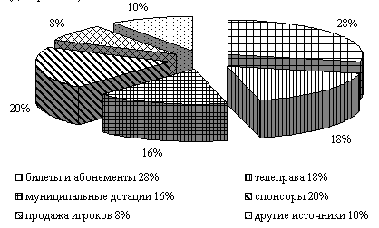 Также существуют другие статьи доходов, но они не являются основными, и в зависимости от вида спорта приносят малую прибыль: доход от аренды стадиона или спортивной площадки, парковка автомашин на специально отведенных местах близ спортивного комплекса, денежный процент от капитала вложенного в банк, продажа пищевых продуктов во время спортивного соревнования. В современном профессиональном спорте существует две основные модели направленности предпринимательской деятельности - спортивно-коммерческая и коммерческо-спортивная. Подходы к ведению спортивной деятельности определяются многими факторами: историческим особенностям страны, региона, континента; спецификой социально-экономической системы, которая существует в той или другой стране; особенностями менталитета населения и т.п. Спортивно-коммерческая модель характерная для международного и европейского профессионального спорта, на первый план выдвигается спортивный результат. Развитие профессионального спорта спортивно-коммерческой модели вызывает большой общественный интерес, который, в частности, выражается в финансовой поддержке профессионального спорта государством. Относительно коммерческо-спортивной модели, то на первый план выносится стремление максимальной прибыли, а спортивная деятельность рассматривается как средство достижения цели. Объединяет обе модели то, что они осуществляются по общим законам рыночной экономики. Вырабатываются аналогичные товары, которые находят своих потребителей - доходы от продажи билетов и абонементов, поступление от продажи прав на трансляцию, средства спонсоров и рекламодателей. Но есть и существенные отличия: в спортивно-коммерческой модель, цель - создание условий для развития вида спорта, структура доходов - используются средства государства и частично "рыночные" источника, вид маркетинга - социально этический. В коммерческо-спортивной, цель - получение прибыли, структура дохода - преобладают "рыночные" источника, вид маркетинга - традиционный [2]. Вместе с тем, рассмотренные направления организации финансовой деятельности футбольных клубов не являются исчерпывающими и требуют более детального их изучения. А все возрастающая конкуренция вынуждает руководство клубов постоянно вести анализ тенденций развития мирового футбола в исследуемом контексте. Последнее является весьма актуальной проблемой. Работа выполнена по плану НИР Запорожского национального университета Цель, задачи работы, материал и методы. Цель статьи состоит в анализе предпринимательской деятельности и источников прибыли в профессиональном спорте. В работе охарактеризованы модели предпринимательской деятельности в этой сфере, рассмотрены тенденции получения доходов на примере профессиональных футбольных клубов Украины.Результаты исследования. Спортивные организации, которые осуществляют спортивно-коммерческое предпринимательство получают поддержку со стороны государства в виде федеральных субсидий и дотаций муниципалитета. На показанной ниже диаграмме можно четко проследить значительный взнос городского муниципалитета в финансировании спортивного клуба, на примере среднестатистического клуба Национальной футбольной лиги Франции (Диаграмма 1).