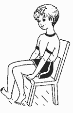 Для закрепления результатов, достигнутых массажем, необходимы регулярные (лучше ежедневные) занятия лечебной гимнастикой. Лечебная гимнастика должна натренировать правильную привычку установки стоп при стоянии и ходьбе. Стопы должны быть параллельными, с легким разведением носков. Исправление порочной установки стопы требует много времени и терпения как со стороны реабилитолога, так и со стороны родителей и ребенка. Специальные упражнения развивают и укрепляют ослабленные мышцы, растягивают сокращенные, но привычка правильно ставить стопы формируется при постоянном контроле взрослых.Основные упражнения, которые мы выполняли в положении сидя Чтобы исключить статическую нагрузку на стопы, на первых этапах упражнения их лучше выполнять сидя. Сгибание и разгибание стоп (рис. 1).