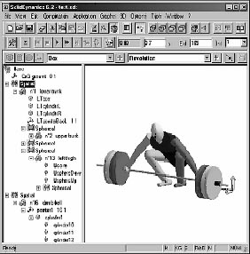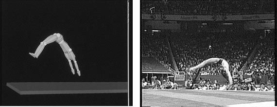 Рис. 1. Сопоставление модели с реальным выполнением двигательного действия гимнаста [8] Для определения внутренних сил действующий на спортсмена в момент приземления и для расчета самой модели, авторы использовали особый вариант прямой динамики. Данный вариант заключался в разработке и введении системы математических уравнений для определения моментов сил в суставах и реакции опоры. Точность получаемой информации определялась путем сравнения и многократного "приспособления" моделируемого движения с реальным выполнением двигательного действия. По мнению Khaled M. Zahran, [9] использование компьютерного моделирования в практике подготовки спортсменов, специализирующихся в тяжелой атлетике является одним из перспективных путей повышения и совершенствования спортивной техники (рис.2).
