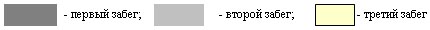 Рис. 2. Результат преодоления первого 100м отрезка бега ("забег"), второго (под воздействием части средств) и третьего (под воздействием всего комплекса) забегов спортсменов О. и Л.