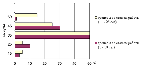 Анализ оценки ошибок при выполнении бросков и ловли предметов показал, что в этих вопросах мнения респондентов существенно разняться. Так, тренеры 1 группы считают, что значимость ошибок при броске и ловле на соревнованиях проходит в таком порядке: низкая амплитуда броска, ловля в две руки, незафиксированное положение броска предмета, долгое ожидание предмета, психологическая неустойчивость гимнастки. Тренеры 2 группы считают, что основными ошибками являются: долгое ожидание предмета, низкая амплитуда броска, ловля в две руки, незафиксированное положение броска предмета, психологическая неустойчивость гимнастки. Характерно, что обе группы респондентов поставили на последнее место психологическую неустойчивость гимнастки, что говорит об их внимании на показатели технической подготовленности. Выводы. 1. Наиболее оптимальное время на отработку бросков и ловли предметов во время тренировки составляет 35 минут. 2. Упражнения с мячом и лентой являются наиболее технически сложными и зрелищными в художественной гимнастике. Во время выполнения упражнений с этими предметами гимнастками наиболее часто допускаются технические ошибки во время соревнований. 3. Основными причинами допускаемых ошибок техники бросков и ловли предметов во время соревнований являются: низкая амплитуда броска, незафиксированное положение броска, долгое ожидание предмета, психологическая неустойчивость гимнастки. Использование полученных результатов в тренировочном процессе позволит значительно повысить уровень подготовки гимнасток к соревнованиям. Дальнейшие исследования будут направлены на разработку мультимедийной программы для совершенствования техники бросков и ловли предметов в художественной гимнастике на этапе специализированной базовой подготовки. Литература: 1. Байер В.В. Составления тренировочных комбинаций на различные виды координационных способностей на этапе предварительной базовой подготовки в художественной гимнастике (на примере упражнений с булавами) / В.В. Байер, А.Я. Муллагильдина // Физическое воспитание студентов творческих специальностей. - 2004. - № 2.- с. 31 -36. 2. Балабанова Е. Анализ ошибок в технике выполнения гимнастками соревновательных упражнений с предметами / Е. Балабанова // Олiмпiйський спорт i спорт для всiх: IX Мiжнародний науковий конгрес: Тези доповiдей. - К.: Олiмпiйська лiтература, 2005. - С. 311. 3. Карпенко Л.А. Современное состояние художественной гимнастике / Л.А. Карпенко // Состояние и перспективы развития физкультурного образования на современном этапе: материалы Международной научной конференции. - Белгород, 2007. - С. 15-19. 4. Николаева Е.С. Методика подготовки юных спортсменок в художественной гимнастике и выполнение упражнений с предметами / Е.С. Николаева // Состояние и перспективы развития физкультурного образования на современном этапе: материалы Международного научного - практической конференции. - Белгород, 2007. - С. 319-321. 5. Кожевникова Л. Критерii оцiнки засвоення спортсменками навичок базових елементiв художньоi гiмнастики / Л. Кожевникова, Ж. Бiлокопитова // Актуальнi проблеми розвитку руху "Спорт для всiх" у контекстi европейськi iнтеграцii Украiни: Матерiали мiжнар. наук. - практичноi конференцii. - Тернопiль, 2004. - С. 108-110. 6. Платонов В.М. Фiзична пiдготовка спортсмена: Навчальний посiбник / В.М. Платонов, М.М. Булатова. - К.: О
