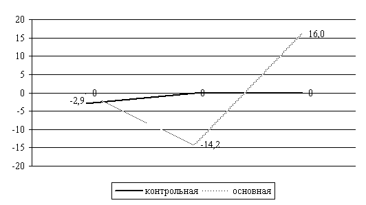 Рис. 2. Показатели центральной гемодинамики в баскетболисток основной группы (n = 8);1- частота сердечных сокращений (ЧСС, уд/мин); 2 - систолическое артериальное давление (САД, мм рт.ст.); 3 - диастолическое артериальное давление (ДАД, мм рт.ст.); 4 - пульсовое артериальное давление (ПАД, мм рт.ст.); 5 - систолический объем кровообращения (СО, мл); 6 - минутный объем кровообращения (МОК, л/мин). Что касается спортсменок основной группы (рис.2), то после пробы Кевдина в них наблюдалось ускорение ЧСС, в среднем уровень которого составил 104,5 уд/мин. Также было отмечено умеренный подъем САД, который в среднем составил 131,4 мм рт. ст. Показатель ДАД практически не изменился и составил в среднем 68,5 мм рт. ст. на фоне незначительного повышения ПАД (62,9 мм рт.ст.). При расчетах СО и МОК было выявлено увеличение МОК (9,2 л/мин) за счет ускорения ЧСС, а не увеличение СО, который в среднем составил 87,7 мл. После тренировочного занятия в период послерабочего восстановления значения исследуемых показателей деятельности системы кровообращения в баскетболисток основной группы несколько снизились, но полностью не соответствовали норме, что свидетельствует о недостаточном уровне саморегуляторных процессов. Увеличение показателя МОК при физической нагрузке достигалось за счет роста ЧСС, при этом САД повышался незначительно, а ДАД оставался практически неизменным на фоне некоторого повышения СО. Перечисленные изменения свидетельствуют о напряжении функционального состояния системы кровообращения и не совсем адекватное кровоснабжение скелетных мышц. По индексу Кердо у всех спортсменок контрольной группы наблюдался нормотонический тип вегетативной регуляции, что свидетельствует об уравновешенности симпатико-и ваготонии (рис.3). Контрольная группа нами и была выделена, как группа сравнения с высокой активностью адаптивных систем. Рис. 3. Показатели вегетативной регуляции по индексу Кердо в спортсменок контрольной (n = 9) и основной (n = 8) групп У спортсменок основной группы по индексу Кердо в 62% баскетболисток наблюдалась ваготония, а в 38% - симпатикотония, что является отражением синдрома вегетативной дисфункции. Основная группа нами была оценена как группа с напряженностью адаптивных систем организма спортсменок, так как перечисленные изменения свидетельствуют о неудовлетворительной адаптации функциональной системы кровообращения к физическим нагрузкам, так как они обеспечивают неадекватное кровоснабжение работающих мышц. Таким образом, полученные данные свидетельствуют о необходимости дифференцированного подхода к тренировочному процессу баскетболисток высокого класса в связи с наличием определенных индивидуальных особенностей в реакции на нагрузку со стороны сердечно-сосудистой сисетмы. Выводы. По анализу полученных данных тестирования реакции сердечно-сосудистой системы спортсменок на физическую нагрузку женской баскетбольной команды высшей лиги можно заключить, что даже среди спортсменок достаточно высокой квалификации существует группа лиц, которые реагируют неадекватно, что может привести к нежелательным, а то и серйозным последствиям во время тренировок или вызвать развитие патологии сердечно-сосудистой системы в будущем. Поэтому, тренировочный процесс требует применения эффективных подходов, позволяющих без увеличения объема и и