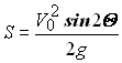 Для определения скорости вылета мяча V0 при длинной передаче, которую игрок принимает стоя на площадке, воспользуемся формулой дальности полета спортивного снаряда [В. Н. Тутевич]. где Скорость V0 вычислим с помощью программы Microsoft Excel, задавая значения L, Координаты установки ориентира находим с помощью уравнений, определяющих положение наивысшей точки траектории снаряда. Представляем таблицы значений Vo, S, H при выполнении длинной передачи мяча. Таблица 1 Значения Vo, S, H при выполнении передачи мяча с расстояния 20, 25, 28 м в диапазоне углов вылета мяча 30 - 50°, высоте точки бросания 200, 210, 220, 230 см. и ловле мяча на уровне баскетбольной корзины (305 см).