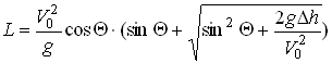 где V0 - скорость вылета мяча, Q - угол между горизонтальной плоскостью и вектором скорости мяча, g - ускорение силы тяжести (гравитационная постоянная); t - время. Исключая из этой системы уравнений время t, найдем уравнение траектории: Подставим в это уравнение где h0 - высота кольца, h1 - высота точки бросания, L - расстояние от точки бросания до точки приема мяча на высоте кольца. И далее при заданном угле вылета мяча определим значение его начальной скорости V0. Зная начальную скорость V0.и, задавая угол вылета