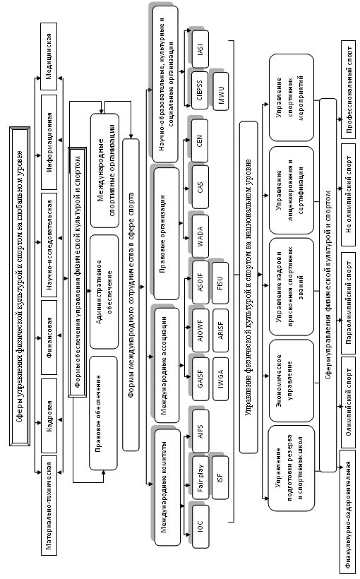 Введение. Сфера физической культуры и олимпийских видов спорта рассматривается с позиций системного подхода, как социально-экономическая система со сложной структурой управленческого механизма, что, в свою очередь, требует применение общенаучных подходов при решении поставленных экономических задач организации и управления олимпийскими видами спорта. В целом, управление этой сферой является таким же необходимым процессом, как и в любой другой сфере деятельности материального производства или социальной сферы. Ведущие ученые Украины в сфере спортивного менеджмента Ю. П. Мичуда, В. Е. Чиркин и А. С. Виханський в своих статьях под понятием "общее управление" понимают управленческую деятельность и процессы, связанные с разработкой концепции и стратегии развития организации, системы, постановкой цели, планированием, организационной и распорядительной деятельностью, координированием и контролем, а также корректировкой ранее принятых решений. Схематически структура общего стратегического управления выглядит такой последовательностью взаимосвязанных процессов: 1) анализ среды, 2) определение цели и системы целей, 3) отбор стратегии; 4) выполнение стратегии, 5) оценка и контроль реализации стратегии [1,2]. В. Токовенко отмечает, что под понятием "система государственного управления" понимают целостную, организованную на единой правовой основе совокупность институтов, функций, отношений, процессов, принципов и методов управления обществом [3]. С точки зрения А. Н. Вацеба, под объектом государственного управления на более высоком уровне обобщенной систематизации можно понимать все общество в целом и отдельные социальные, социально-экономические системы, сферы деятельности общества - политическую, экономическую, социально-гуманитарной и др. Субъектом государственного управления является система государственной власти в лице его органов, которые наделены определенным функционально-смысловым назначением. Работа выполнена на основании исследований государственной бюджетной темы "Теоретико-методологические и прикладные аспекты применения инновационных технологий в спортивном менеджменте" сводного плана НДР в сфере физической культуры и спорта на 2011-2015 гг. Министерства образования и науки, молодежи и спорта Украины. № государственной регистрации 0111U001719. Цель, задачи работы, материал и методы. Целью работы является исследование основных подходов к управлению развитием олимпийских видов спорта и определение роли международных организаций в управлении развитием олимпийских видов спорта. Результаты исследований. В контексте данного исследования под объектом государственного управления следует понимать открытую, сложную, динамичную и самоуправляемую социально-экономическую систему - сферу физической культуры и олимпийским видам спорта, а под субъектом государственного управления - систему органов государственной власти в области физической культуры и олимпийских видов спорта. Развитие отрасли физической культуры и олимпийских видов спорта (объект государственного управления) происходит благодаря усовершенствованию материально-технического, информационного, кадрового, научного, нормативно-правового, финансового, медицинского обеспечения, что, в свою очередь, находит свое выражение в таких показателях: уров