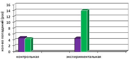Рис. 4. Динамика попаданий по мячу у бейсболистов контрольной (n=50) и экспериментальной (n=50) групп до и после эксперимента Примечания: