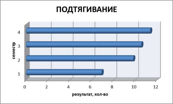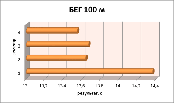 Полученные результаты исследования позволяют утверждать, что регулярные физические занятия и спортивные упражнения дают значительный эффект в развитии студентов: как физическом, так и умственном. Практически по всем показателям физической подготовленности студентов факультета механики и энергетики (за исключением забега на 100 м в III-м семестре) наблюдаем стабильное улучшение результатов в течение 4-х семестров учебы. Ухудшение отдельных результатов физического развития в III-м семестре считаем следствием влияния погодных условий (в течение января-марта физические занятия проходят, преимущественно, в спортзалах), а также вследствие возрастных изменений организма студентов. Однако, средний балл академической успеваемости имеет четкую тенденцию к росту: от 3,73 в I-м семестре до 4,03 в IV-м семестре.