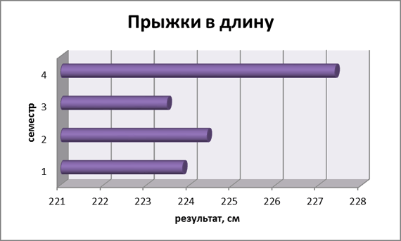 Рис. 1. Изменения показателей физической подготовленности студентов в I-IV семестрах учебы. 1 Рис. 2. Динамика в успеваемости студентов в течение I-IV семестров учебы. Совершенно понятно, что на процесс формирования умственного развития студенческой молодежи имеют значительное влияние и другие факторы. Однако, мы считаем, что одним из важнейших, является повышение уровня физической подготовленности студентов. Выводы. Полученные результаты позволяют утверждать четкую зависимость умственной работоспособности студентов от уровня их физической подготовленности. Перспективами дальнейших исследований в этом направлении является научно-обоснованное усовершенствование методик физических занятий студентов с учетом специфики их будущей профессиональной деятельности. Литература. 1. Волков В.Л. Основы профессионально прикладной физической подготовки студенческой молодежи. - К. : Знание Украины, 2004. - 82 с. 2. Грибан Г.П., Богданов С.Н., Чубаров М.М. Профессионально-прикладная физическая подготовка студентов сельскохозяйственных вузов. - М. : ФИС, 1990. - С. 23-25. 3. Канишевский С.М. Научно-методические и организационные основы физического самоусовершенствования студенчества. - К. : ИЗМН, 1999. - 270 с. 4. Краснов В.П. Проблемы физической надежности сельской молодежи // Всеукраинская конференция "Молодежь и общество". - Одесса, 2001. - С.87-89. 5. Раевский Р.Т. Профессионально-прикладная физическая подготовка студентов технических вузов: Учеб. пособие для ин-тов. - М. : Высшая школа, 1985. - 55 с. 6. Esbjоrnsson Liljedahl M., Holm I., Sylvеn Ch., Jansson E. Different responses of skeletal muscle following sprint training in men and women. Eur. J. Appl. Physiol. 1996. 74: 375-383. References: 1. Volkov V.L. Osnovy professional'no prikladnoj fizicheskoj podgotovki studencheskoj molodezhi [Bases professionally applied physical preparation of students youth], Kiev, Knowledge of Ukraine, 2004, 82 p. 2. Griban G.P., Bogdanov S.N., Chubarov M.M. Professional'no-prikladnaia fizicheskaia podgotovka studentov sel'skokhoziajstvennykh vuzov [Professionally-applied physical preparation of students of higher agricultural institute], Moscow, Physical Culture and Sport, 1990, pp. 23-25. 3. Kanishevskij S.M. Nauchno metodicheskie i organizacionnye osnovy fizicheskogo samousovershenstvovaniia studenchestva [Scientifically methodical and organizational bases of physical self-perfection of student], Kiev, ICME Publ., 1999, 270 p. 4. Krasnov V.P. Problemy fizicheskoj nadezhnosti sel'skoj molodezhi [Problems of physical reliability of rural young people], Molodezh' i obshchestvo [Youth and society], Odessa, 2001, pp. 87-89. 5. Raevskij R.T. Professional'no-prikladnaia fizicheskaia podgotovka studentov tekhnicheskikh vuzov [Professionally-applied physical preparation of students of higher technical institutes], Moscow, High school, 1985, 55 p. 6. Esbjоrnsson Liljedahl M., Holm I., Sylvеn Ch., Jansson E. Different responses of skeletal muscle following sprint training in men and women. European Journal of Applied Physiology. 1996, vol.74, pp. 375-383. Информация об авторе: Тищенко Валерия Алексеевна Львовский национальный аграрный университет ул. В.Великого 1, г. Дубляны, Жовковский р-н, Львовская обл. 80381, Украина. Поступила в редакцию 17.01.2012г. Information about the author: Tishchenko V.A. Came to edition 17.01.2012. |