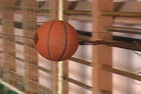 ТРЕНАЖЕР ДЛЯ ОБУЧЕНИЯ ТЕХНИКЕ ДЛИННОЙ ПЕРЕДАЧЕ МЯЧА В БАСКЕТБОЛЕ СПОСОБОМ СОГНУТОЙ РУКОЙ СВЕРХУ С ЗАМАХОМ Чарикова Е.Н. Харьковская государственная академия физической культуры Рассмотрены технические устройства, которые применяются в баскетболе. Выделены особенности конструирования тренажеров и методики их применения в тренировочном процессе. Предложен тренажер для обучения технике длинной передаче мяча в баскетболе. Тренажер представляет собой двигающийся по тросу имитатор баскетбольного мяча. Данная конструкция позволяет моделировать исходное положение, замах для выполнения передачи и линию разгона мяча в заключительной фазе движения. Разработана методика использования тренажера в учебном процессе. Ключевые слова: тренажер, конструкция, трос, методика, тренировка. Анотацiя. Чарiкова К.М. Тренажер для навчання технiцi довгiй передачi м'яча в баскетболi способом зiгнутою рукою зверху iз замахом. Розглянуто технiчнi пристроi, якi застосовуються в баскетболi. Видiленi особливостi конструювання тренажерiв i методики iх вживання в тренувальному процесi. Запропонований тренажер для навчання технiцi довгiй передачi м'яча в баскетболi. Тренажером е iмiтатор баскетбольного м'яча, що рухаеться по тросу. Дана конструкцiя дозволяе моделювати початкове положення, замах для виконання передачi i лiнiю розгону м'яча в завершальнiй фазi руху. Розроблена методика використання тренажера в учбовому процесi. Ключовi слова: тренажер, конструкцiя, трос, методика, тренування. Annotation. Charikova K.M. Training simulator for teaching a technique to the long transmission of ball in basket-ball by a method by an arcuated hand from above with threaten. Technical devices which are used in basket-ball are considered. The features of constructing of trainers and method of their application are selected in a training process. A trainer is offered for teaching a technique to the long transmission of ball in basket-ball. A trainer is a moving on a rope imitator of basket-ball ball. This construction allows to design initial position, замах for implementation of transmission and line of acceleration of ball in the final phase of motion. The method of the use of trainer is developed in an educational process. Keywords: trainer, construction, rope, method, training. Введение По мнению ряда авторов в повышении эффективности учебно-тренировочного процесса важная роль принадлежит применению тренажерных устройств [ 3, 5, 7, 9] . При этом применение тренажеров необходимо осуществлять с учетом основных положений теории и методики спортивной тренировки, соблюдением педагогических принципов обучения [ 2, 6] . С точки зрения спортивной педагогики очень важно создавать условия для разучивания движений "сразу только правильно". Этому во многом способствует реализация метода "направленного прочувствования" на основе применения технических средств [4, 8]. Целесообразность их использования базируется на экспериментально доказанной возможности целенаправленного управления изменением характеристик движений при их воспроизведении в специально созданных искусственных условиях [1, 5, 7]. При формировании навыка длинной передачи мяча способом согнутой рукой сверху с замахом представляется целесообразным (рекомендуется) обеспечивать контроль качества выполнения каждого задания, причем о наличии ошибок извещать обучаемого немедленно с быстрым исправлением неправильно выполненного технического приема. При этом следует помнить об особой важности формирования начального навыка без ошибок [ 9] . Исследование выполнялось согласно Сводному плану научно-исследовательской работы Министерства образования и науки, молодежи и
