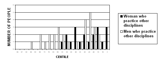 The last table presents a collation of the results of assertiveness level among people who practice other sport disciplines considering sex. The results are presented both in centiles and points. Table 7. The results obtained by men and women who practice other sport disciplines