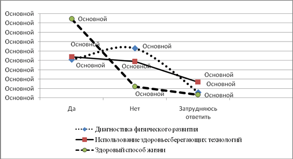 Результаты исследований. Для определения степени готовности будущих учителей физического воспитания к профессиональной деятельности нами было проведено анкетирование среди студентов III - IV курсов. Целью данного анкетирования является анализ понимания студентами содержания деятельности учителя физического воспитания по отношению к процессу формирования здоровья учеников. В анкетировании приняли участие 482 студента. В анкете студентам необходимо было ответить на вопросы следующим образом: "да", "нет", "затрудняюсь ответить". Студентам были предложены следующие вопросы: Физическое здоровье: Согласны ли Вы с тем, что учителю физического воспитания необходимо: