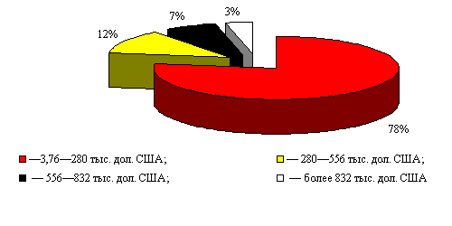 Другая особенность этого рынка - то обстоятельство, что небольшое число наиболее талантливых работников обслуживает практически весь рынок. Игрок, находящийся во второй половине мировой сотни у мужчин, зарабатывает призовых около 200 тыс. дол., женщины 100-150 тыс. из них налоги занимают 30 %, и больше половины денег уходит на оплату тренеров, менеджеров, спарринг-партнеров и переезды. Официальные призовые теннисистов складываются из средств, заработанных ими на всех соревнованиях (в трех разрядах), включаемых в календарь ATP Tour, за исключением Кубка Дэвиса, а также за участие в челленджерах. Рассмотрим в процентом соотношении распределение призовых среди лучших игроков-профессионалов в 2004 г. [3] (рис. 1, рис. 2). Анализ диаграмм свидетельствует об аналогичной ситуации в мужском и женском профессиональном теннисе, где до 80 % игроков имеют минимальные доходы и только 3-7 % получают максимальные. Рис. 1. Распределение доходов теннисисток-профессионалов (200 сильнейших согласно итоговому рейтингу WTA 2004 г.): Следует отметить, что сегодня выдающихся успехов в профессиональном спорте добились теннисистки. Еще 10-15 лет назад соревнования среди мужчин пользовались значительно большей популярностью, чем среди женщин. Существенно различались мужчины и женщины по уровню призовых фондов на крупнейших турнирах, доходов от участия в соревнованиях, спонсорских соглашений и рекламных акций, вниманию средств массовой информации и зрительской аудитории. Однако ситуация кардинально изменилась. Сильнейшие теннисистки мира по указанным характеристикам не только не уступают, но и нередко превосходят сильнейших представителей мужского тенниса. Рис. 2. Распределение доходов теннисистов-профессионалов (343 сильнейших согласно итоговому рейтингу ATP 2004 г.): Девушки под руководством Билли-Джин Кинг долго добивались равноценной оплаты труда. Причем, при полном несоответствии временных затрат на всех турнирах "Большого шлема" теннисистки получают такие же призовые, как и мужчины. По данным WTA, в 2008 г. больше всех призовых за сезон заработала Серена Уильямс - 3 млн 852 тыс. дол. США (победительница турниров в Бангалоре, Майами, Чарльстоне, а также Открытого первенства США). Винус Уильямс заработала 3 млн 747 тыс. дол. США (выиграла Уимблдон, соревнования в Цюрихе и итоговый турнир WTA). Только третье место заняла сербская спортсменка Елена Янкович, ставшая по итогам года первой ракеткой мира, заработавшая 3 млн 064 тыс. дол. США. За ней следует ее соотечественница Анна Иванович (2 млн 838 тыс.), а далее пять теннисисток из России: Динара Сафина (2 млн 515 тыс.), Мария Шарапова (1 млн 937 тыс.), Елена Дементьева (1 млн 920 тыс.), Вера Звонарева (1 млн 773 тыс.) и Светлана Кузнецова (1 млн 452 тыс.). В двадцатку богатейших теннисисток года входит еще одна россиянка - Надежда Петрова (893,29 тыс. долларов), занимающая 13-е место в этом рейтинге. Следует отметить, что единственной теннисисткой, которая в 2007 г. за сезон заработала 5 млн дол. США, остается Ж. Энен [8]. Кроме того, сегодня выведена закономерность доходов теннисистов-профессионалов за сезон от их личностных характеристик: рейтинг (итоговая позиция в сезоне), сумма очков, количество сыгранных и выигранных турниров, количество сыгранных и выигранных матчей, доля выигранных матчей в общем количестве поединков, возраст и звездный статус (к "звездам" были отне