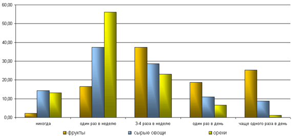 АНАЛИЗ ПИТАНИЯ СТУДЕНЧЕСКОЙ МОЛОДЕЖИ ВО ВЗАИМОСВЯЗИ С ОСОБЕННОСТЯМИ ЗДОРОВЬЯ Подригало Л.В.1, Пашкевич С.А. 1, Прусик Кристоф2 Харьковский национальный педагогический университет имени Г.С.Сковороды1 Академия физического воспитания и спорта, Гданьск, Польша2 Анализируется питание студентов, на основании оценки частоты потребления основных продуктов питания. В исследовании участвовали 50 студентов в возрасте 21-22 года. Установлено, что питание большинства студентов является нерациональным, в повседневной жизни молодежи присутствует ряд факторов риска, связанных с недостаточным потреблением полезных продуктов питания. Достаточно широкую распространенность имеют пищевые привычки, обусловленные потреблением так называемого "пищевого мусора". Проведенный анализ корреляционных взаимосвязей между питанием, умственной работоспособностью и особенностями образа жизни подтвердил, что нарушение правил здорового питания негативно влияет на показатели работоспособности, повышает вероятность вредных привычек. Низкая культура питания, недостаточная информированность молодежи в вопросах здорового питания обусловливают необходимость проведения соответствующей санитарно-просветительной работы. Ключевые слова: студенты, питание, здоровье, взаимосвязи. Анотацiя. Подрiгало Л.В., Пашкевич С.А., Прусик Кристоф.. Аналiз харчування студентськоi молодi у взаемозв’язку iз особливостями здоров’я. Аналiзуеться харчування студентiв, оцiнено частоту вживання основних продуктiв харчування. В дослiдженнi прийняли участь 50 студентiв у вiцi 21-22 роки. З’ясовано, що харчування бiльшостi студентiв е нерацiональним, у повсякденному життi молодi мае мiсце низка чинникiв ризику, пов’язаних iз недостатнiм вживанням корисних продуктiв харчування. Достатньо високу розповсюдженiсть мають харчовi звички, обумовленi вживанням так званого "харчового смiття". Проведений аналiз кореляцiйних взаемозв’язкiв мiж харчуванням, розумовою працездатнiстю та особливостями способу життя ствердив, що порушення правил здорового харчування негативно впливае на показники працездатностi, пiдвищуе вiрогiднiсть шкiдливих звичок. Низька культура харчування, недостатня iнформованiсть молодi у питаннях здорового харчування обумовлюють необхiднiсть проведення вiдповiдноi санiтарно-просвiтницькоi роботи. Ключовi слова: студенти, харчування, здоров’я, взаемозв’язки Annotation. Podrigalo L.V., Pashkevich S.A., Prusik Krzysztof. Analysis of the relationship between food habits and health students. The article analyzes nutrition of students, based on the assessment of frequency of consumption of basic food products. The study involved 50 students aged 21-22 years. Set that the nutrition of the majority of students is irrational, in the daily life of young people there is a number of risk factors associated with inadequate intake of healthy food products. Have far-reaching enough food habits due to the consumption of so-called "food waste". The analysis of the correlation relationship between nutrition, mental performance and lifestyle factors, confirmed that a violation of the rules of a healthy diet affects the performance efficiency, increases the likelihood of bad habits. Slow food culture, lack of knowledge of young people on healthy food cause the need for appropriate health education. Key words: students, feed, health, intercommunications. Введение. Исходя из вклада образа жизни в формирование здоровья, общепризнано, что этот компонент является ведущей составляющей его сохранения [Молодь за здоровий спосiб життя: щорiчна доповiдь Президенту Украiни, ВР Украiни, КМ Украiни про становище молодi в Украiнi (за пiдсумками 2009 р.). К.: СПД Крячун Ю.В., 2010, 156 с.]. В свою очередь среди составляющих здорового образа жизни одной из важнейши