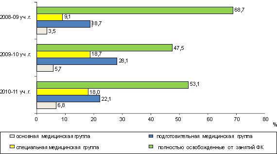 Методы исследования: анализ и обобщение данных научной литературы; опрос в виде анкетирования и бесед; педагогические наблюдения; тестирование; метод индексов; медико-биологические методы исследования; педагогический эксперимент; методы математической статистики. Обоснованность и достоверность результатов обеспечивалась надёжной теоретико-методологической основой исследования; соответствием научных методов поставленным задачам; значительным объёмом эмпирических данных (более 10 000 измерений), полученных независимыми экспертами; репрезентативностью выборок испытуемых; корректностью использования методов математической статистики; применением современных информационных технологий. Исследование проведено в рамках выполнения НИР по двум проектам, поддержанным Министерством образования и науки РФ: 1) проект "Разработка новых физкультурно-оздоровительных технологий, способствующих повышению функциональных возможностей организма и обеспечению высокой эффективности образовательной деятельности студентов", выполняемый в рамках ФЦП "Научные и научно-педагогические кадры инновационной России" на 2009-2013 годы; 2) проект №6.2093.2011 "Кинезиотерапия в системе оздоровления студентов вузов", выполняемый в рамках реализации программы "Развитие научного потенциала высшей школы" на 2012-2014 годы. Исследование проводилось с сентября 2007 г. по август 2011 г. и включало следующие этапы: 1-й этап (предварительный; сентябрь 2007 г. - июнь 2009 г.) - изучение проблемы по литературным источникам и на практике; исследование особенностей состояния здоровья и некоторых аспектов жизнедеятельности студентов различных медицинских групп; формирование гипотезы исследования, постановка цели и задач исследования; 2-й этап (экспериментальный; июль 2009 г. - июнь 2010 г.) - разработка методики применения гимнастических упражнений хатха-йоги на занятиях по физической культуре со студентами СМГ с функциональными нарушениями позвоночника; исследование эффективности разработанной методики; 3-й этап (заключительный; июль 2010 г. - август 2011 г.) - статистическая обработка, анализ и обобщение результатов исследования; формулирование выводов; подготовка практических рекомендаций. Результаты исследований. В ходе изучения специальной литературы было установлено, что проблема снижения здоровья студенческой молодежи РФ на сегодняшний день является актуальной. В настоящее время около 40-45% студентов, по результатам медицинского осмотра, относятся к специальному учебному отделению. При этом самыми распространенными среди студентов являются различного рада нарушения ОДА - на их долю приходится более 60% всех отклонений в здоровье молодежи в целом по стране. При этом большинство всех нарушений ОДА приходятся на сколиозы и остеохондрозы, возникновение которых напрямую связано с малоподвижным образом жизни. В силу возрастающего количества студентов с функциональными нарушениями позвоночника, которым врачи предписывают заниматься физической культурой в СМГ, одним из наиболее острых является вопрос о разработке программ по дисциплине "Физическая культура" для студентов СУО. В ходе проведенных теоретических исследований было установлено, что в настоящее время в виду отсутствия единой программы по физической культуре для СУО кафедры физического воспитания большинства
