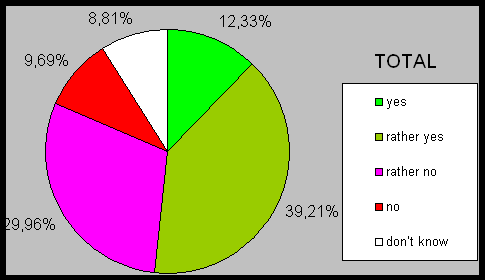In case of having the possibility to make own independent decision in terms of how to spend leisure time, 41% of respondents would choose active forms (table 2). It would result in increasing the level of active by 3%, however, passive ways of spending free time would decrease by 11% in favour of option "no answer’" Table 2 Forms of spending leisure time chosen on my own (n=229)